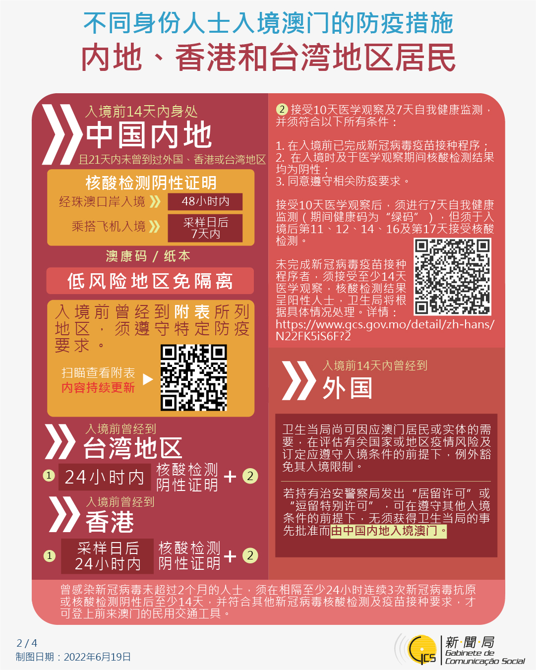 不同身份人士入境澳門的防疫措施