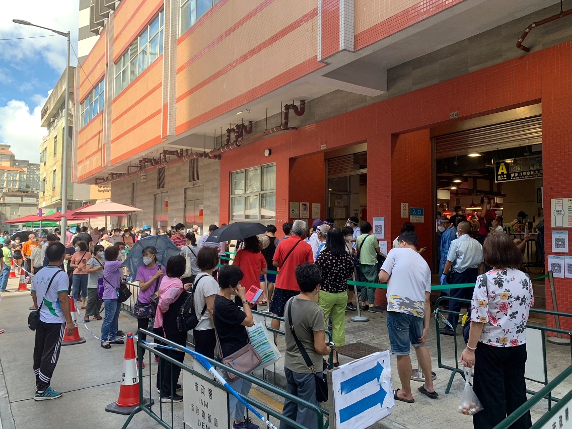 市政署已分別於人流較多的沙梨頭街市、祐漢街市及下環街市外架設排隊動線,並由工作人員指示市民有序進入街市,同時亦為長者及行動不便人士安排特別通道。