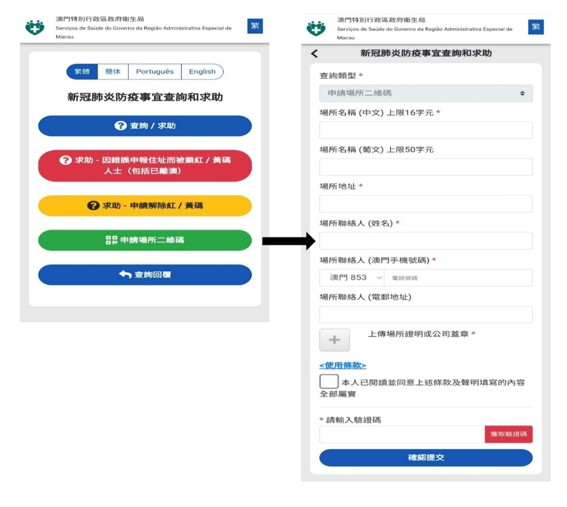 “新冠肺炎防疫事宜查詢和求助”平台已開通“申請場所二維碼”專區