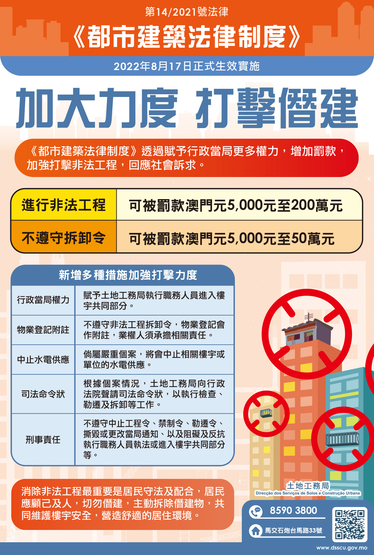 更多資訊,請查閱土地工務局網站(https://dsscu.gov.mo/)內“《都市建築法律制度》資訊網”。