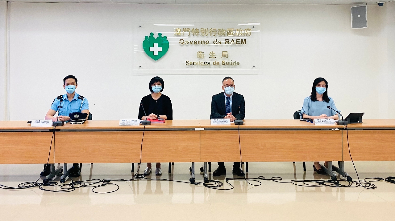 新型冠狀病毒感染應變協調中心8月4日舉行記者會,衛生局仁伯爵綜合醫院李偉成醫務主任、旅遊局傳播及對外關係廳劉鳳池廳長、衛生局疾病預防及控制中心傳染病防控處梁亦好處長、治安警察局公共關係處李德輝處長分別介紹了本澳的整體防疫情況。