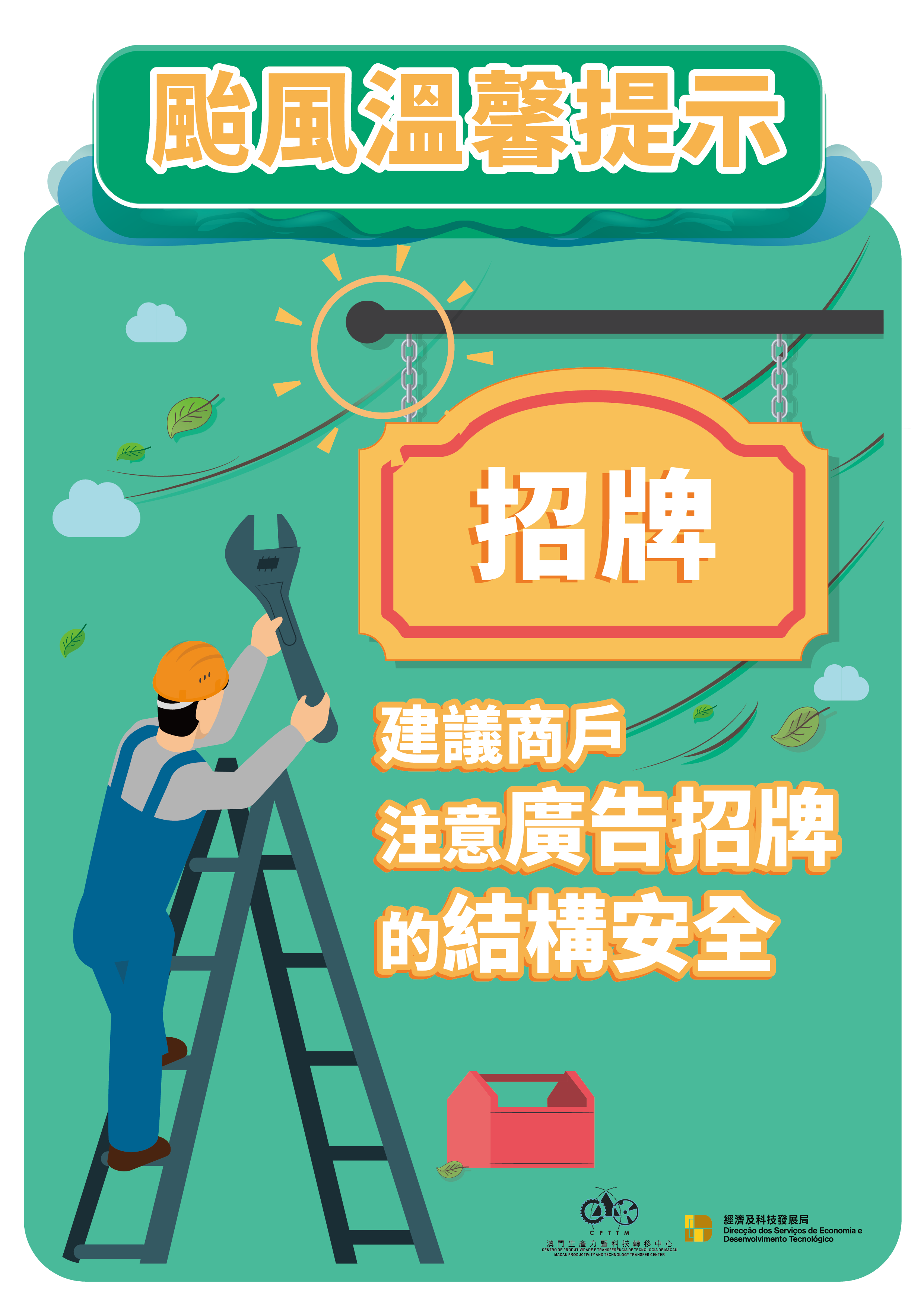經濟及科技發展局和澳門生產力暨科技轉移中心再次提醒企業,特別位處低窪地區的商戶,應做好防風防洪防浸的準備工作及預防措施,以免造成貨物及設備損失。同時,商戶應密切留意氣象局發佈的最新天氣情況。