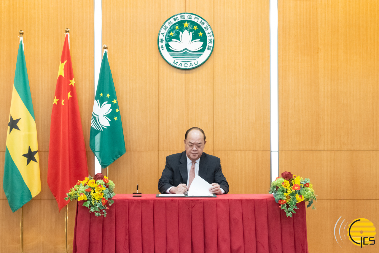 簽署儀式以視頻連線方式分別在澳門特區政府總部和阿瓜格蘭德大區舉行,聖多美和普林西比司法、內政和人權部長西爾西奧、聖多美和普林西比總理外事顧問薩爾瓦特拉、外交部駐澳門特別行政區特派員公署特派員劉顯法、中國駐聖多美和普林西比民主共和國大使館臨時代辦胡濱等嘉賓分別在兩地出席觀禮。