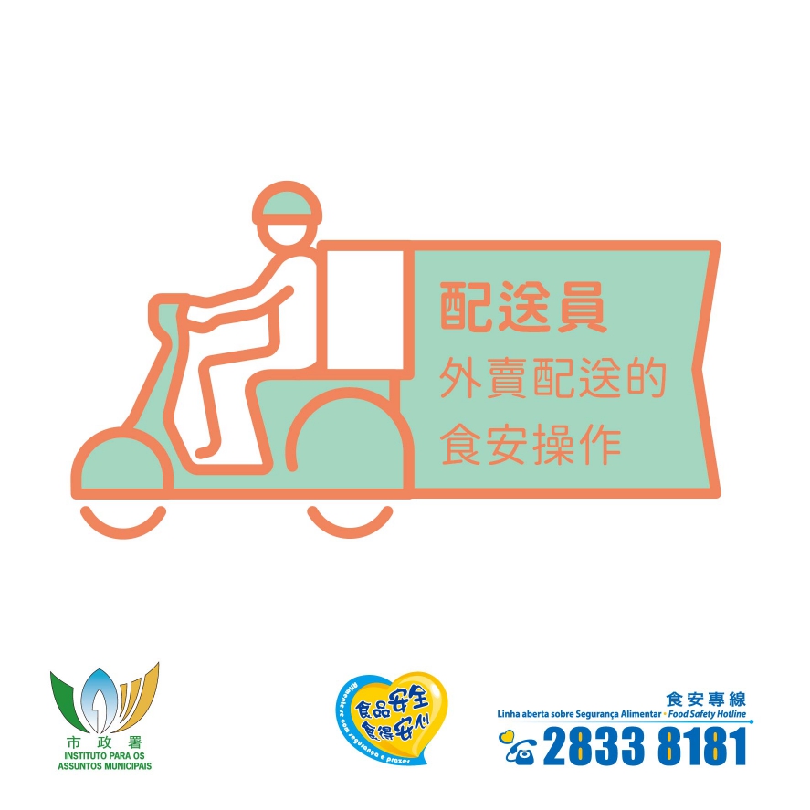 隨著外賣訂餐日漸普及,在配送外賣食品時,配送員除須遵守衛生防疫指引外,更須注意各項食品安全須知。將熱食存於保溫箱,生冷即食食品存於冷藏設備中,盡量避免長時間置放在炎熱天氣日曬雨淋,安全地把食品送到目的地。此外,亦須定期清潔消毒配送設備(如車輛及保溫箱等);配送員若身體不適,應暫停接觸食品及盡快求醫。