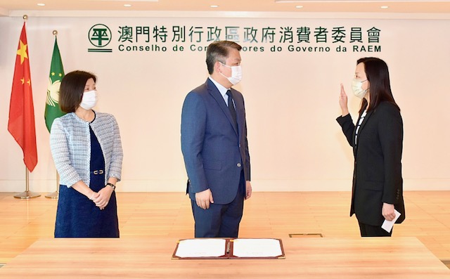 消費者委員會執行委員會主席梁碧珊今(15)日就職,就職儀式由經濟財政司司長李偉農主持。