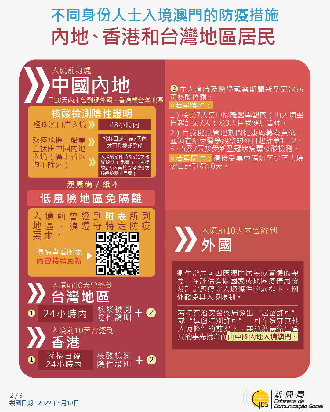 不同身份人士入境澳門的防疫措施