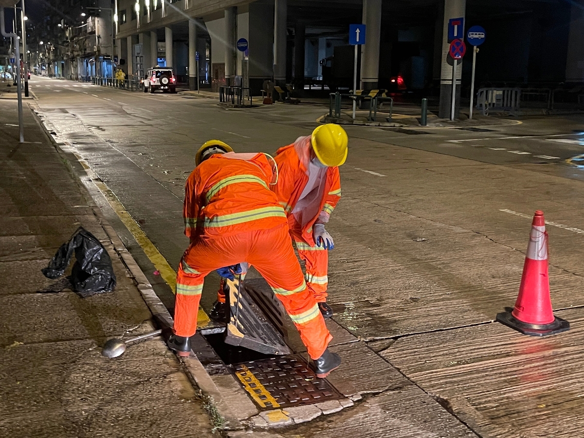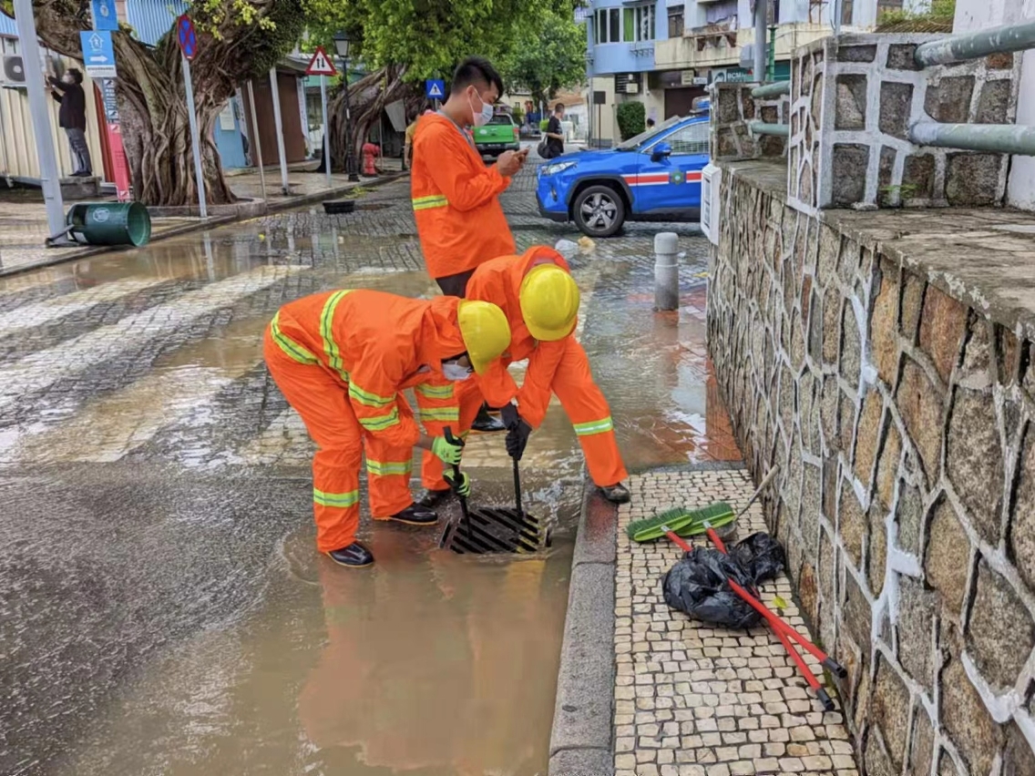 市政署啟動應急機制,持續派員到各區清理路邊雨水井沖積的垃圾,並在安全的情況下打開渠蓋疏導路面積水。同時,密切監察各雨水泵站及箱涵渠的運作情況,保障渠道排洪能力,盡力舒緩水浸情況。