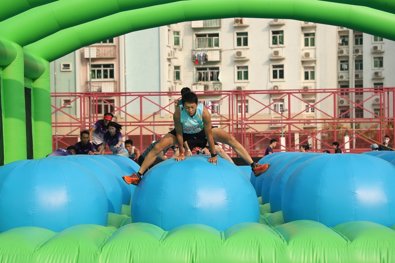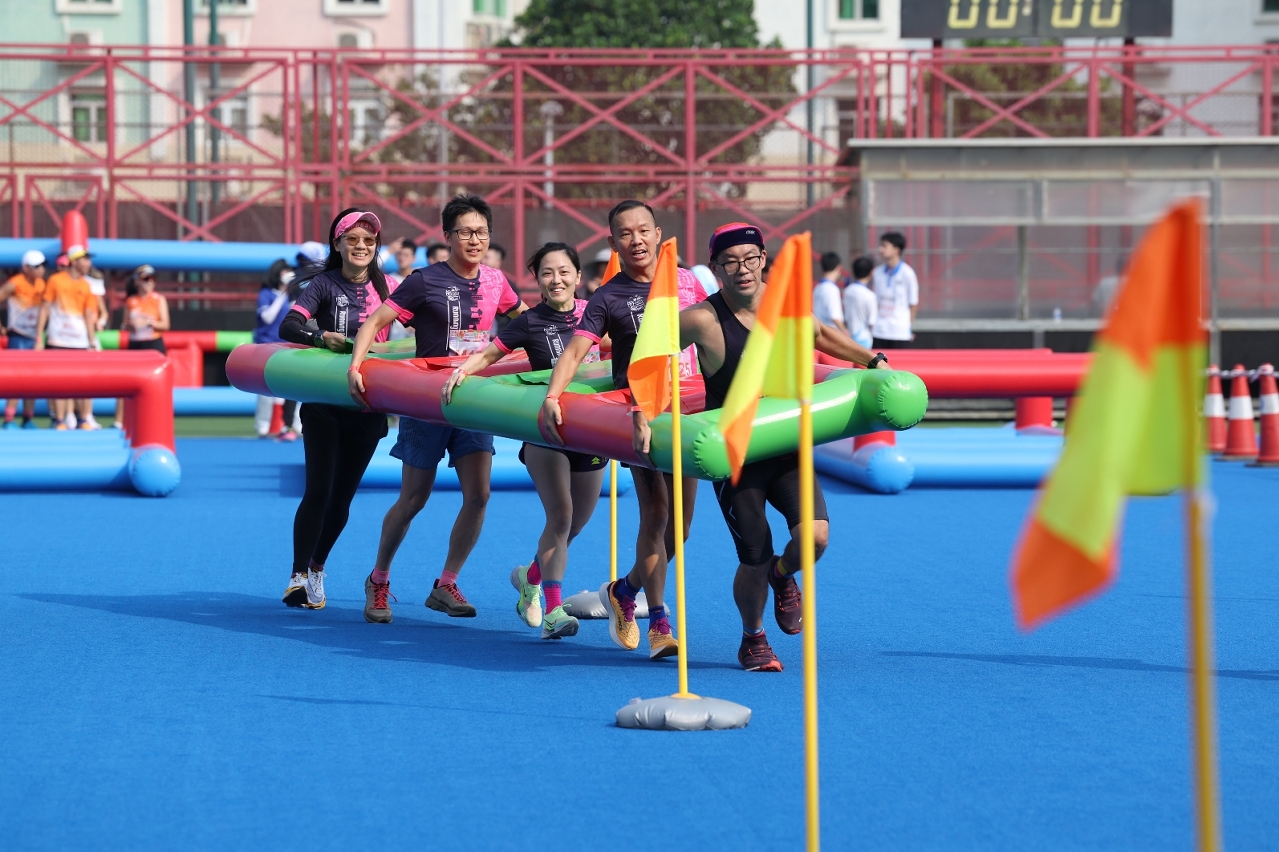 活動以男女混合隊際競技比賽的形式進行,共設有多個具挑戰性且趣味性的遊戲關卡,吸引了近400名參加者同場較技。一眾運動健兒身手不凡,默契十足,現場氣氛熱烈歡欣。