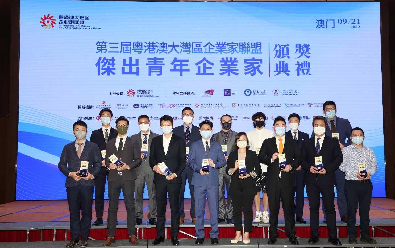 由粵港澳大灣區企業家聯盟主辦的第三屆“粵港澳大灣區傑出青年企業家評選活動”頒獎典禮以線上結合線下的方式於香港、深圳及澳門三地同步舉行,澳門會場設於澳門大學。102位最具潛力及具有代表性的青年企業家獲表彰其為大灣區的建設作出的貢獻,當中有10位來自澳門,包括5位澳門大學校友。