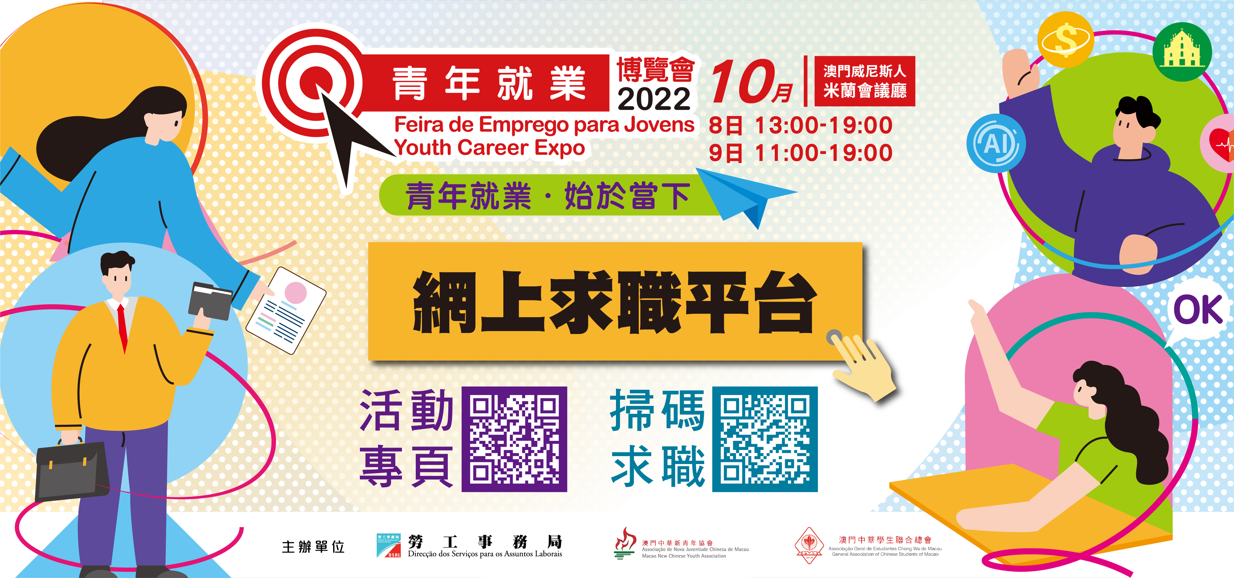 如欲瀏覽更多關於“青年就業博覽會2022”的最新資訊,可登入:youthcareerexpo.org.mo,或於辦公時間內致電2835 8963與澳門中華新青年協會梁小姐或陳小姐聯絡。
