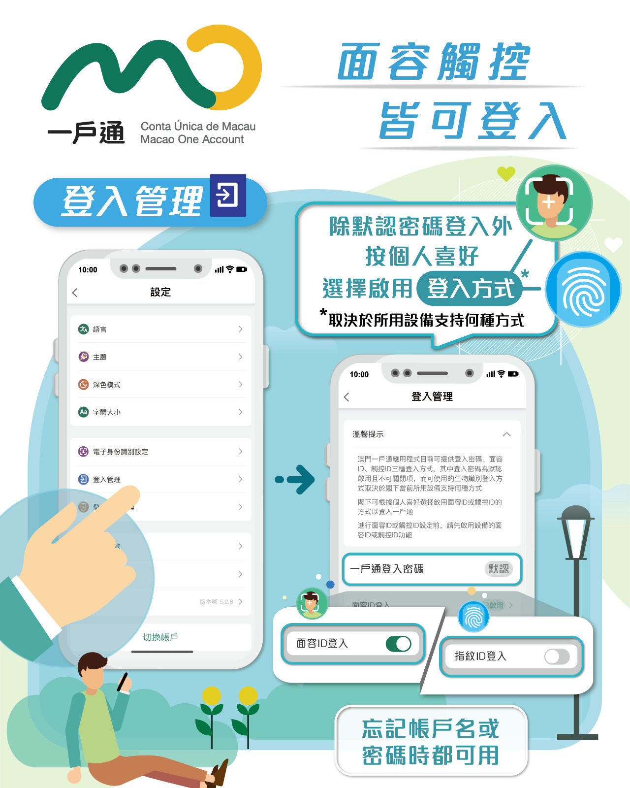 同時,考慮到長者等群體較容易忘記登入帳戶名稱及密碼,在登入方式方面,“一戶通”除默認以密碼登入外,用戶還可選擇啟用面容ID或觸控ID登入,無需輸入帳戶名稱及密碼亦可快捷、安全地登入使用。