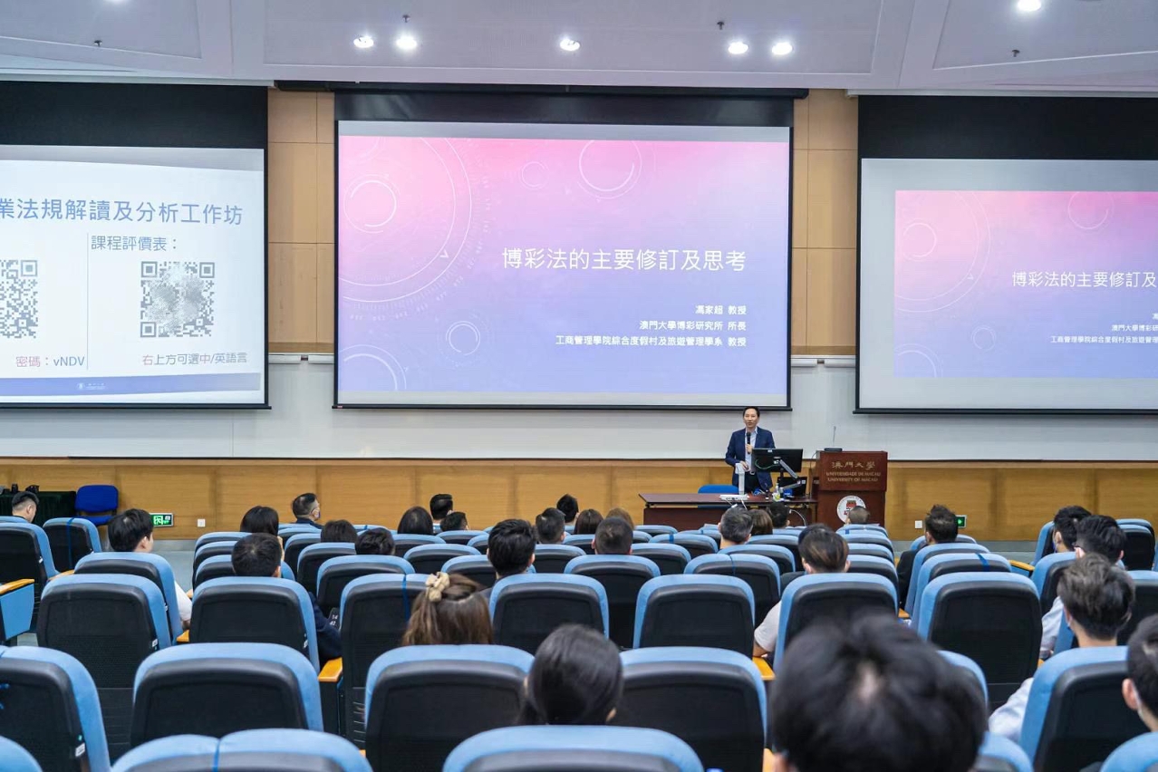工作坊內容包括澳門最新博彩業法規和分析法律制度對於澳門社會環境、經濟發展、行業規模帶來的影響,由澳大博彩研究所所長馮家超、澳門發展策略研究中心副理事長呂開顏及澳大社會科學學院助理教授楊鳴宇進行講解,吸引約40名學員參加。現場設有與導師互動環節,以加深學員對行業新法規的認識。