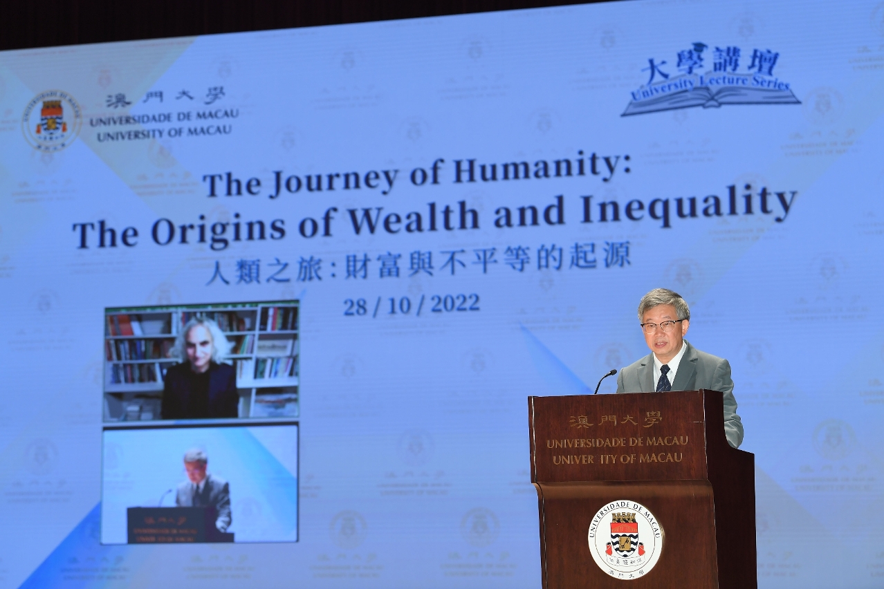 澳門大學今(28)日舉行“大學講壇"講座,由著名經濟學家奧戴德·蓋勒(Oded Galor) 擔任講者,就“人類之旅:財富與不平等的起源”為題發表演說,探討人類文明數項重大課題諸如發展、貧窮、增長、財富、不平等之間的關係。講座線上線下同步舉行,出席者眾多,討論氣氛熱烈。