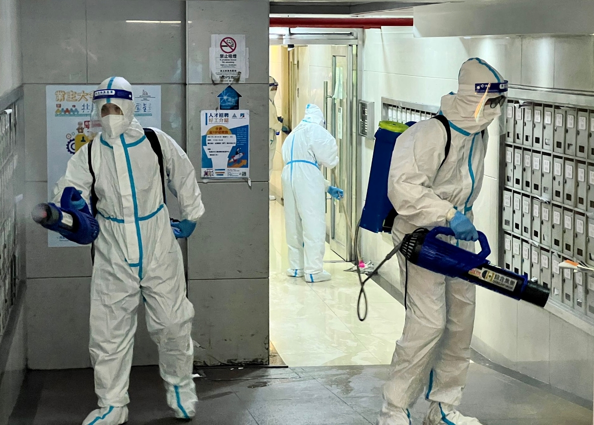 市政署對新增輸入性陽性病例居所大廈加強清潔消毒