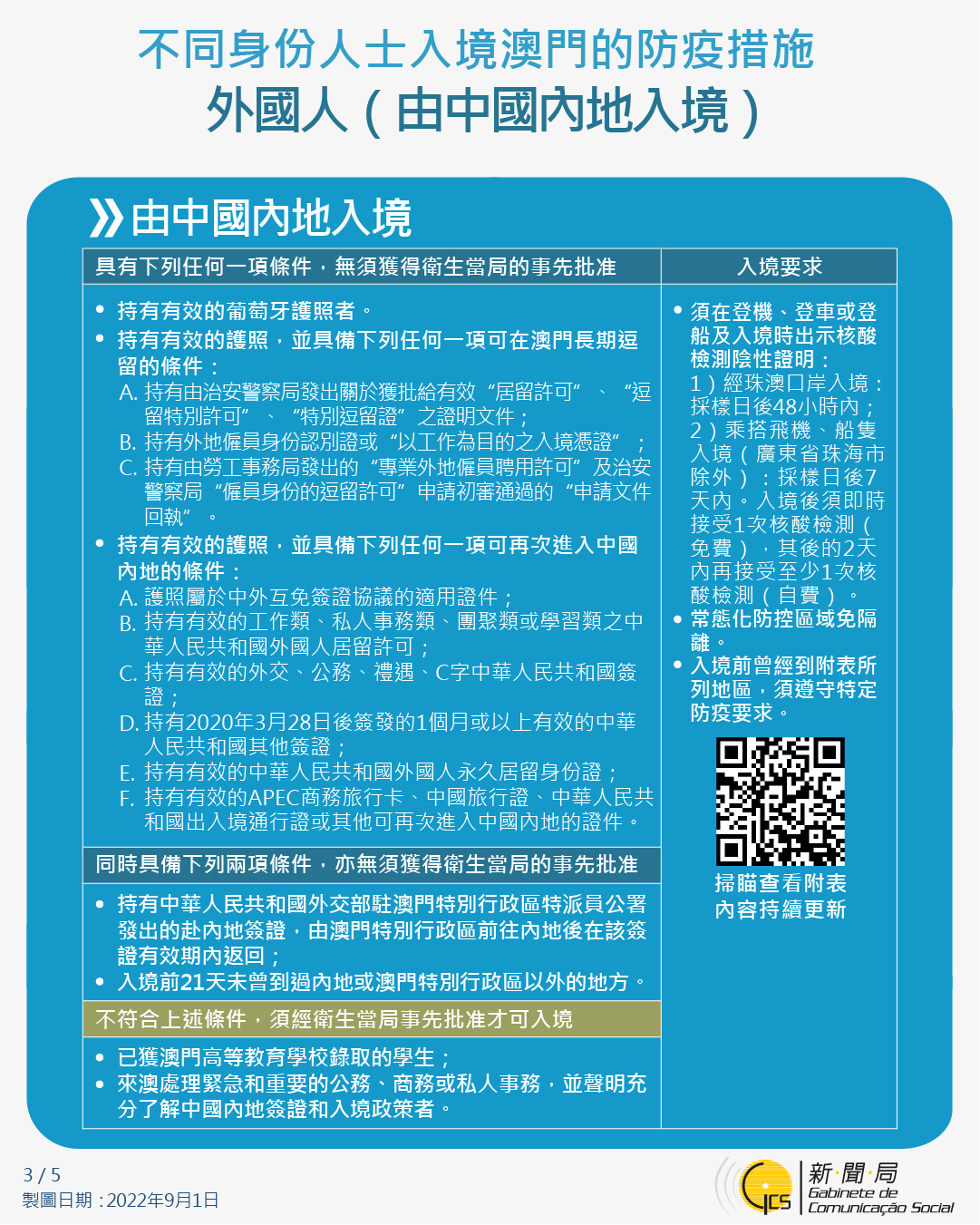 不同身份人士入境澳門的防疫措施