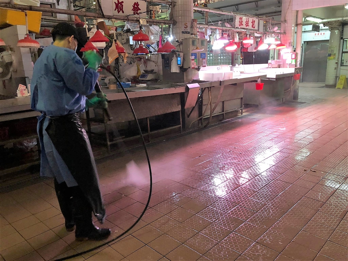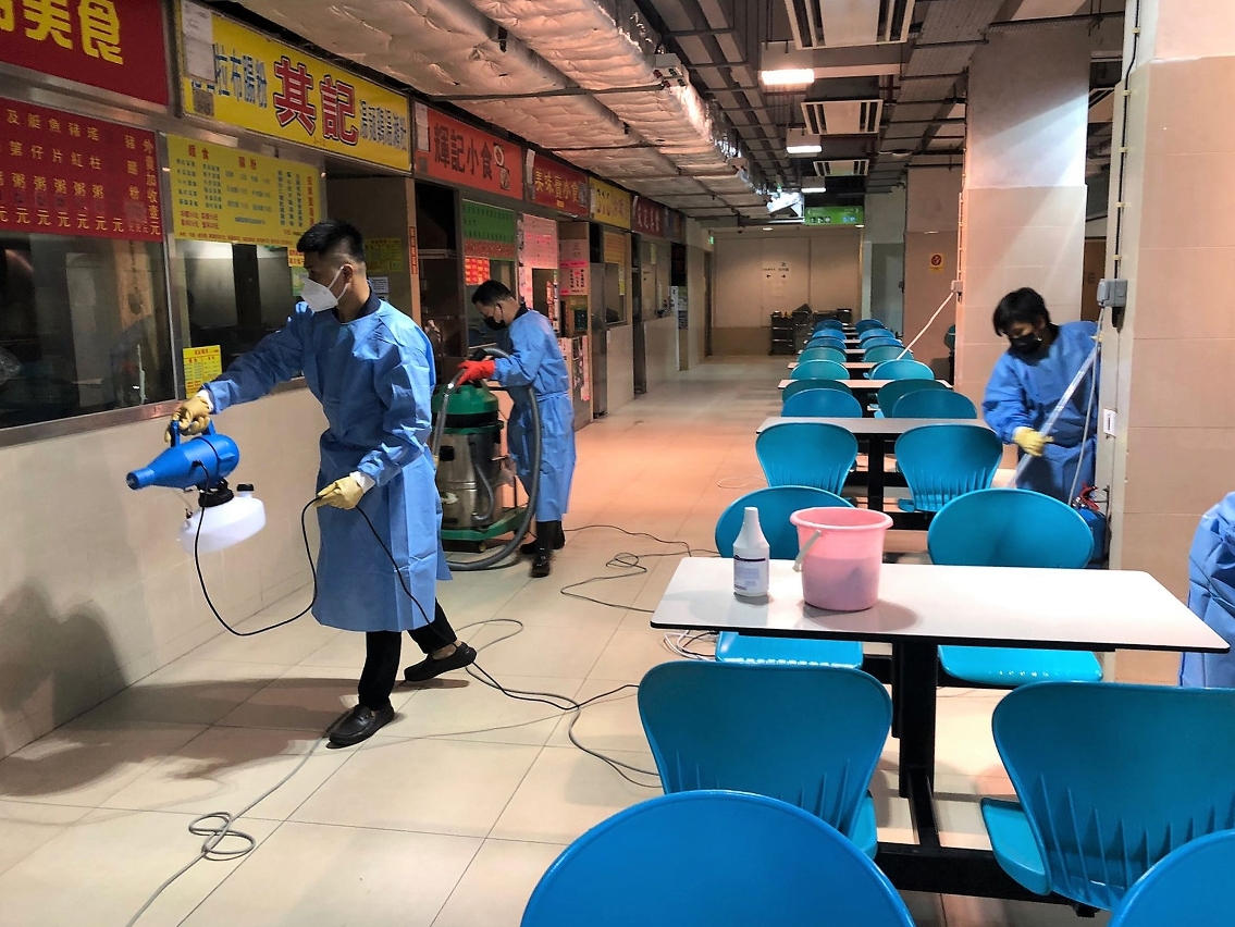 因應新型冠狀病毒感染的最新情況並配合防控工作,市政署已加強對祐漢街市各樓層及熟食中心等多個區域進行全面清潔消毒。