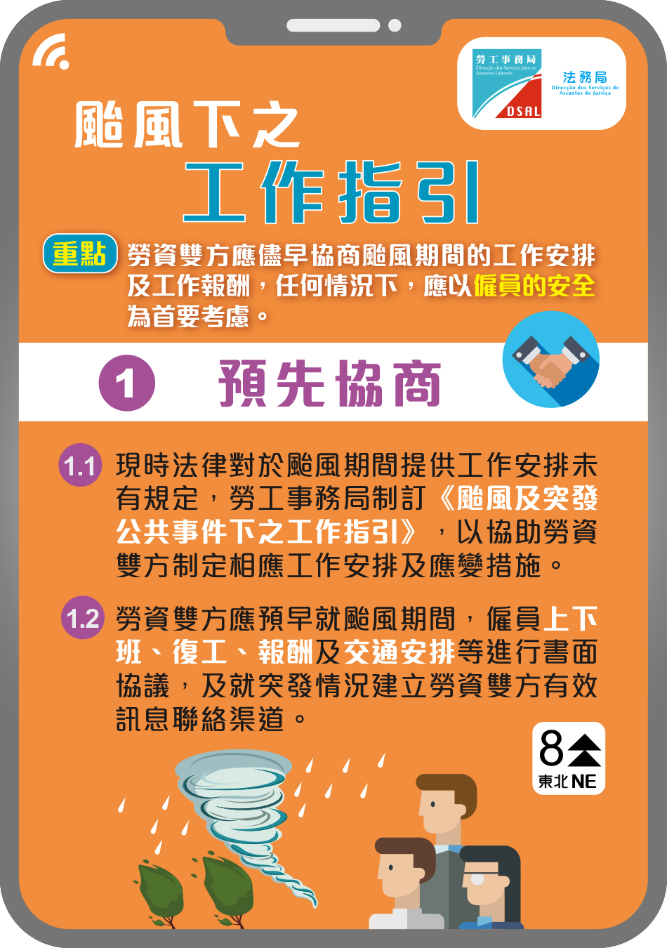 《颱風及突發公共事件下之工作指引》( https://www.dsal.gov.mo/download/pdf/function_classification/labor_problem/download/blnotice_weather_c.pdf)