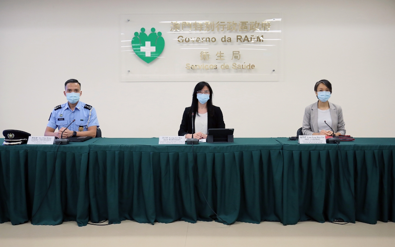 新型冠狀病毒感染應變協調中心11月4日舉行記者會,衛生局疾病預防及控制中心傳染病防控處梁亦好處長、治安警察局行動及通訊處馬超雄處長、旅遊局公共關係處藍同好處長分別介紹了本澳的整體防疫情況。