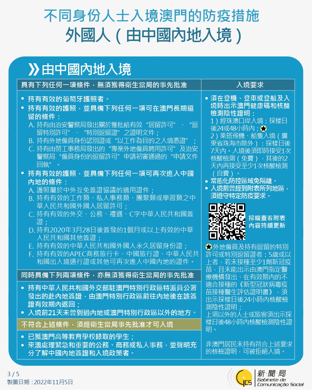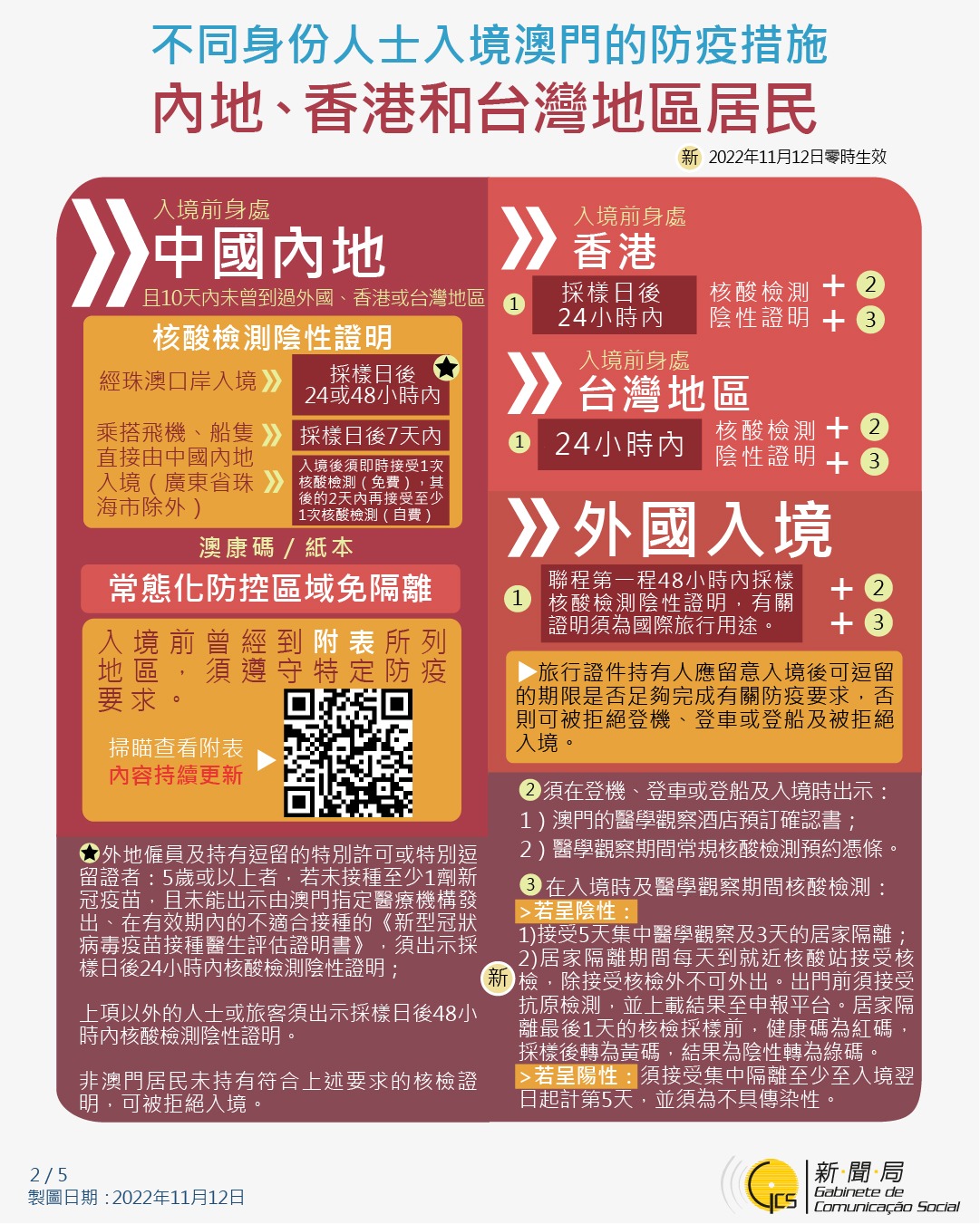 【圖文包】最新入境澳門的防疫措施 (2022/11/12)