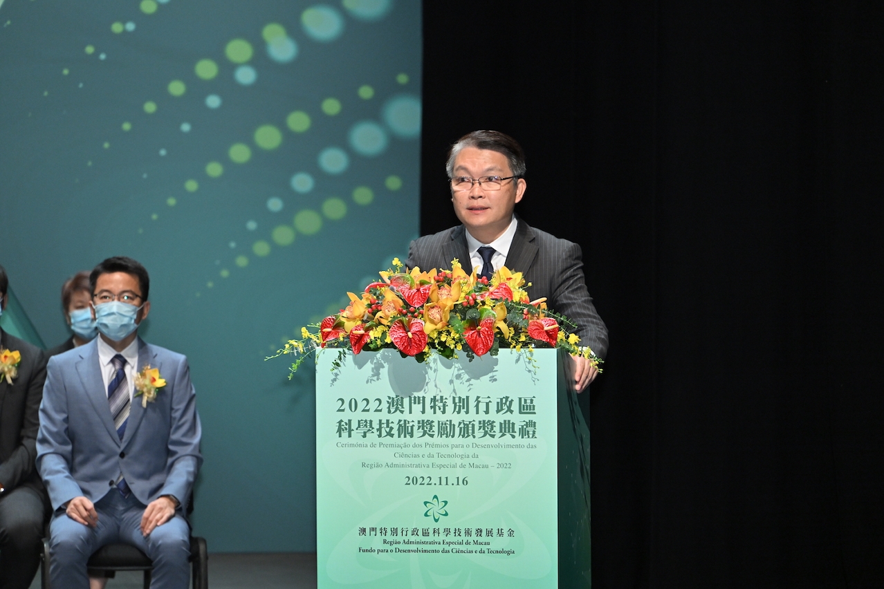 2022年澳門科學技術獎勵頒獎典禮於11月16日上午假澳門文化中心綜合劇院舉行,來自中央駐澳機構、國家科技部、珠海市科技創新局、本澳政府部門、高等院校、科研院所及科技團體等300多名代表參加了典禮。