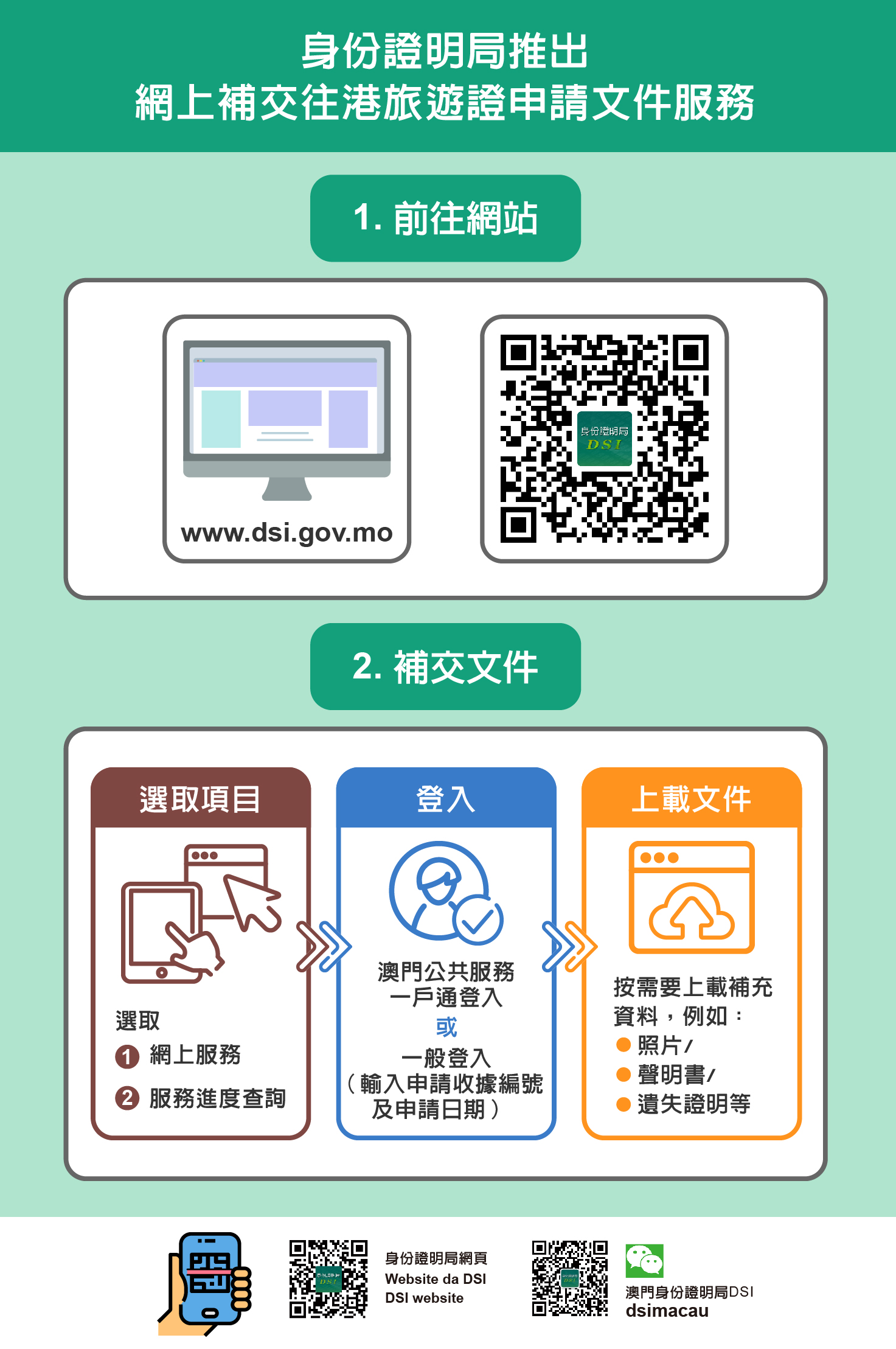 如有查詢,請致電身份證明局熱線2837-0777/2837-0888或電郵至info@dsi.gov.mo。