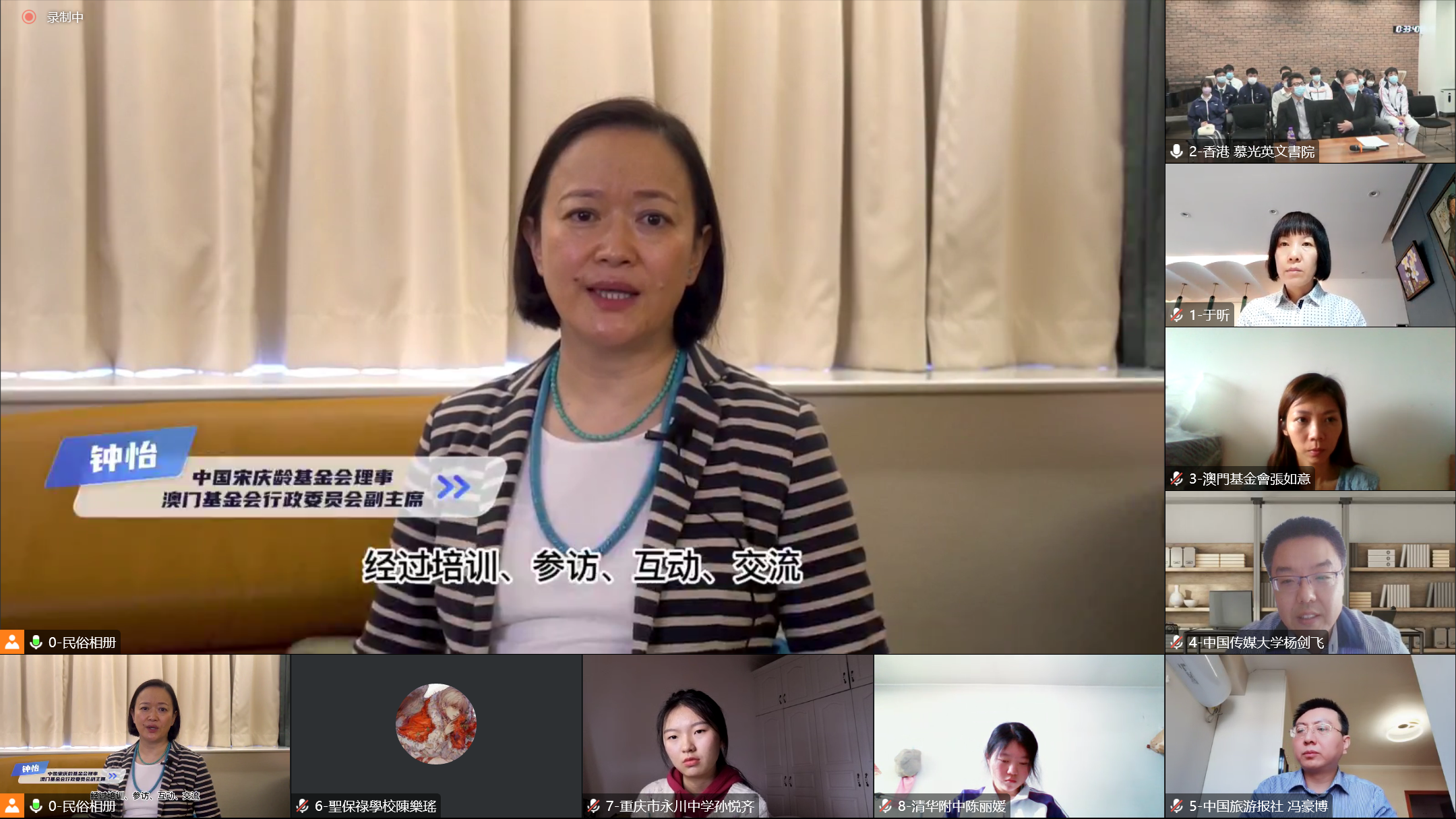 中國宋慶齡基金會港澳台事務部副部長于昕於總結致辭時表示中國宋慶齡基金會自1982年成立以來,始終堅持繼承和發揚宋慶齡先生的崇高精神,在促進內地與港澳青少年交流等方面發揮了重要作用。〝我的民俗相冊〞活動作為品牌專案,為內地與港澳青少年開展交流、建立友誼搭建了橋樑。希望在不久的將來,各位線上相識的小夥伴能相約線下見面,共同完成在活動中許下的諾言,一起做中華優秀傳統文化的喜愛者、守護者和傳承者。