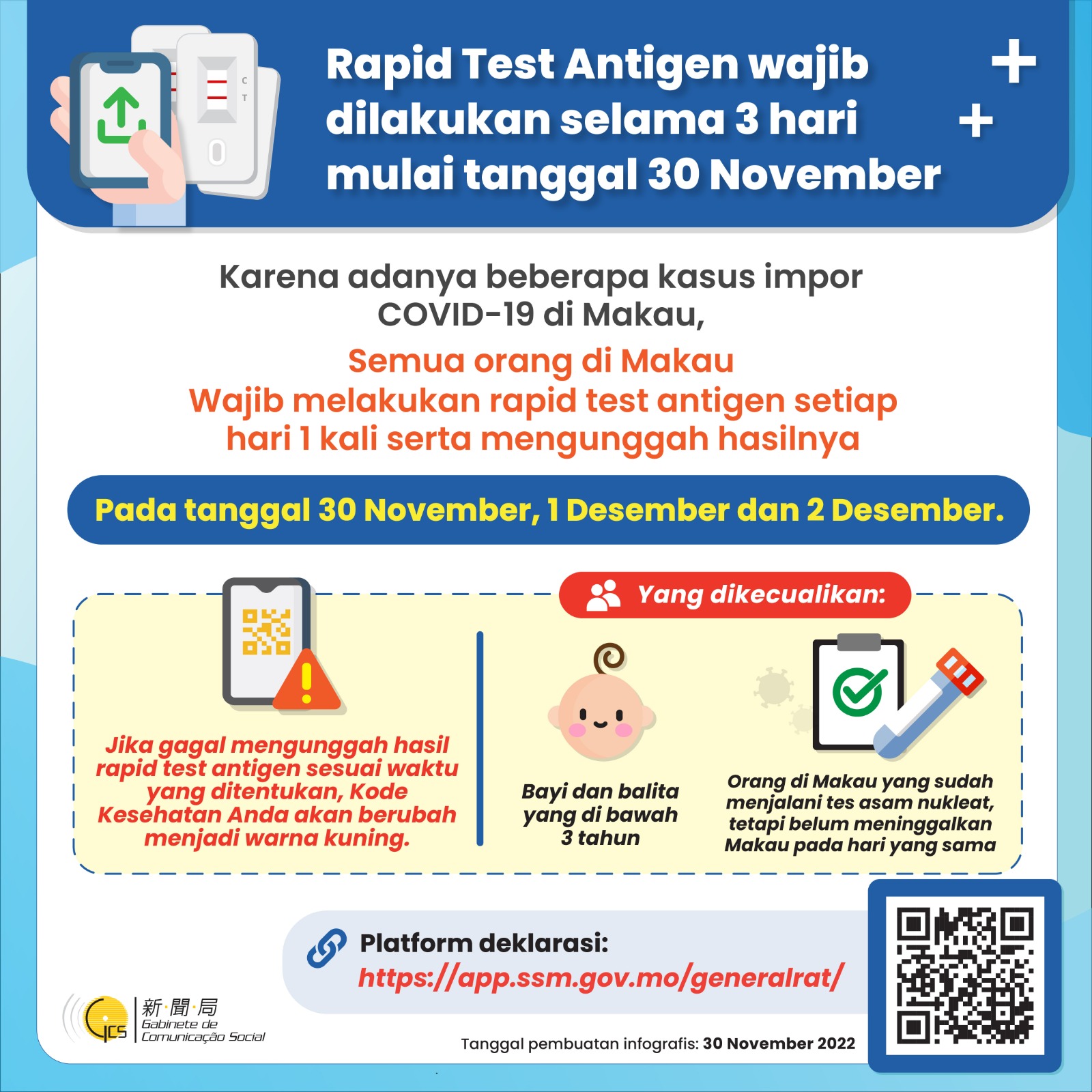 11月30日及12月1、2日,每天須進行1次快速抗原檢測及申報。
