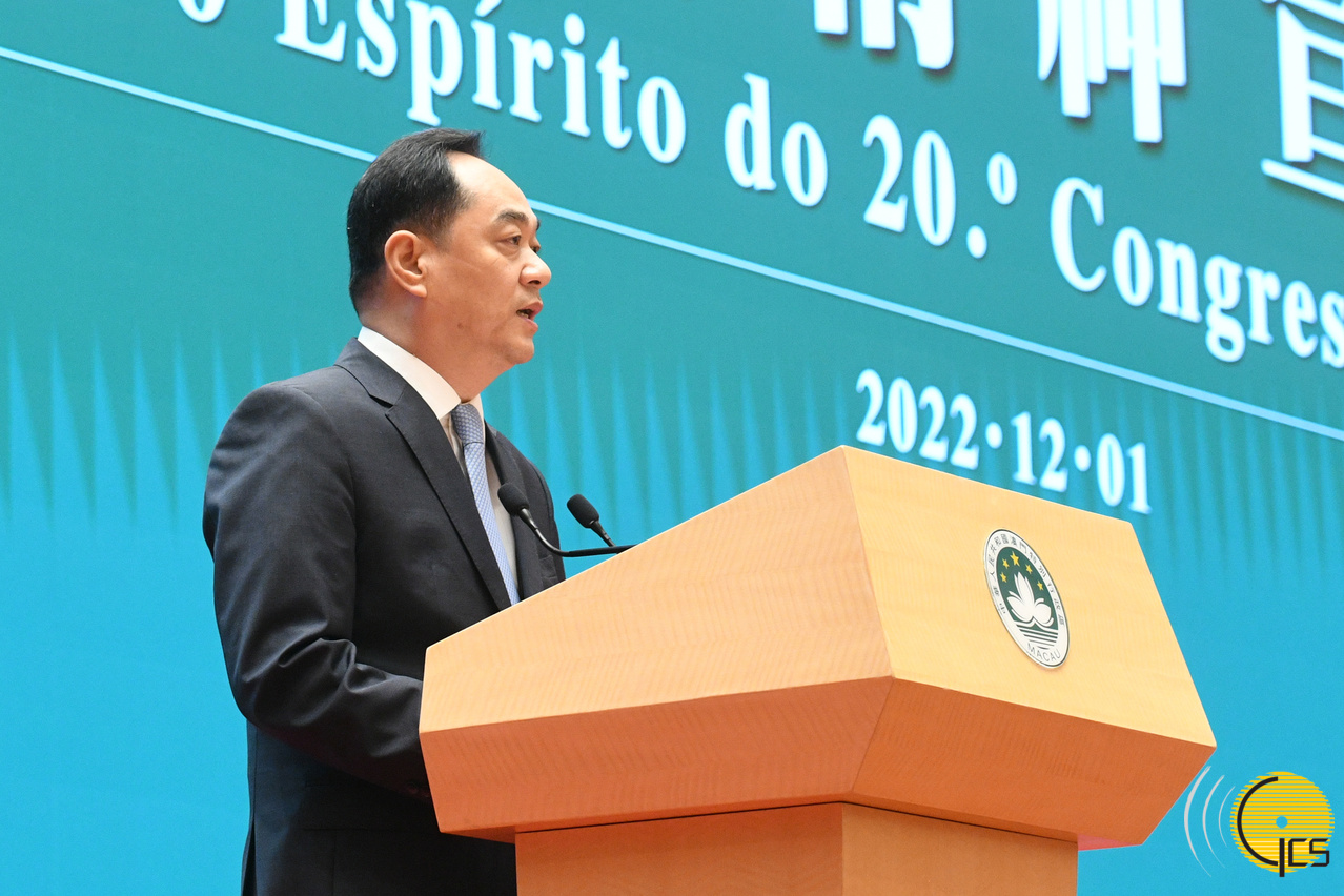 行政長官重申,二十大報告中關於澳門工作的重要論述,彰顯了中央對“一國兩制”偉大事業的高度重視和親切關懷,對澳門發展給予了重要指引和重大支持,為具有澳門特色的“一國兩制”成功實踐行穩致遠,進一步指明了方向,提供了根本遵循,極大地鼓舞了廣大澳門同胞的發展信心。