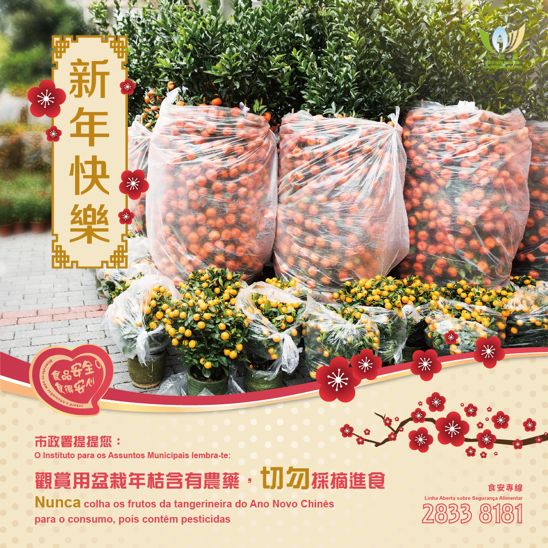 此外,春季天氣潮濕溫暖,市民亦須注意貯存食品的環境、時間及溫度,尤其不應將糕點、剩餘的餸菜在室溫下置放過長時間;倘發現發霉或其他異常狀況,應停止食用並棄掉。而只供觀賞的賀年盆桔,其栽種條件、農藥使用要求與食用蔬果有一定差異,市民不應採摘作直接或加工醃製食用。