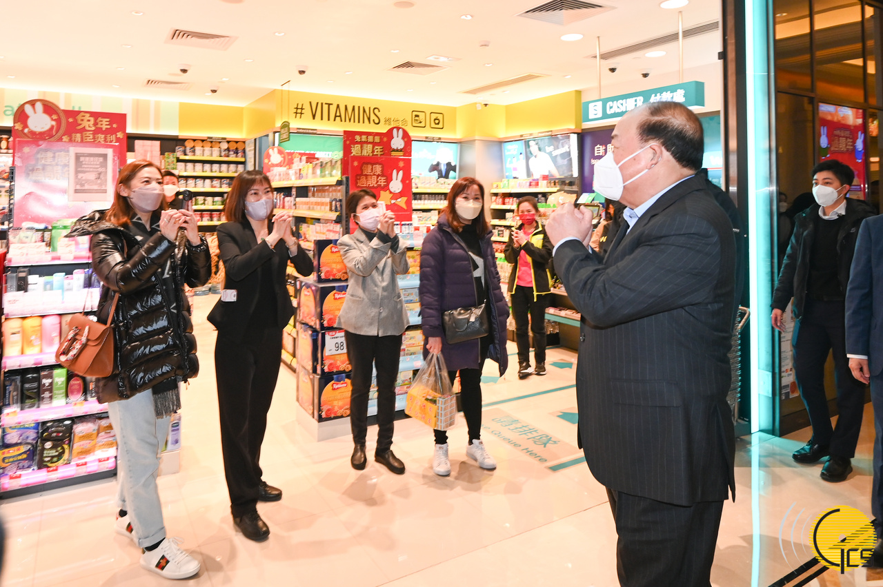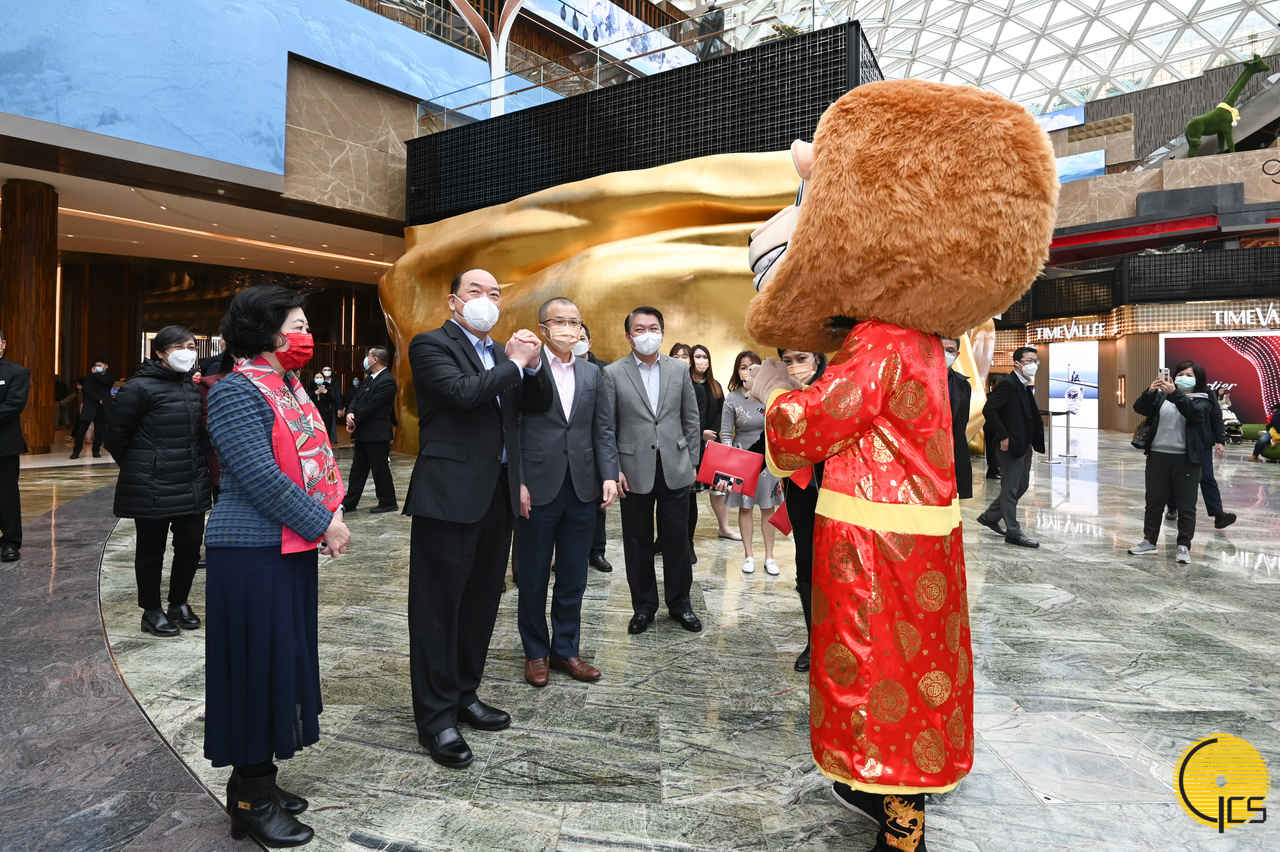 行政長官在瞭解各項非博彩元素設施項目期間不時向商戶拜年,關心商戶在新春期間經營情況,沿途並向綜合度假休閒企業的員工、居民和旅客問好,致以新春祝福。