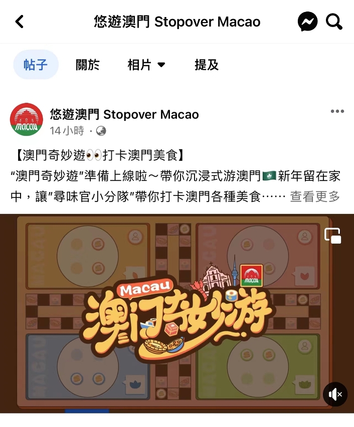 旅遊局與內地廣受歡迎的芒果TV合作微綜藝節目《澳門奇妙遊》,由4位內地著名藝人組成的“尋味官小分隊” 體驗澳門美食為主線,以遊戲方式帶觀眾打開澳門之旅。節目於今天(26日) 年初五起,每逢周四及周五晚上6時在芒果TV播出。