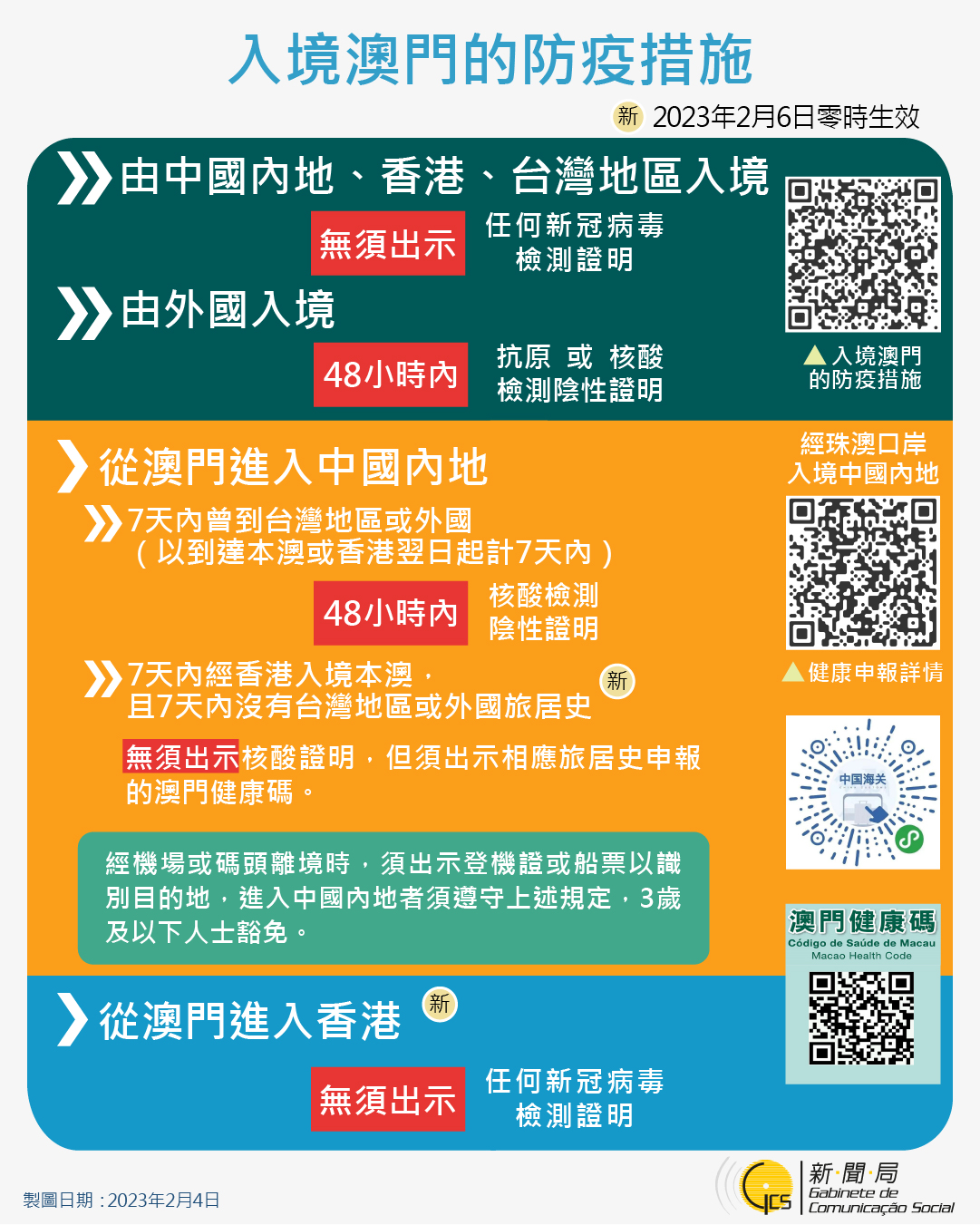 【圖文包】最新入境澳門的防疫措施 (2023/2/4)