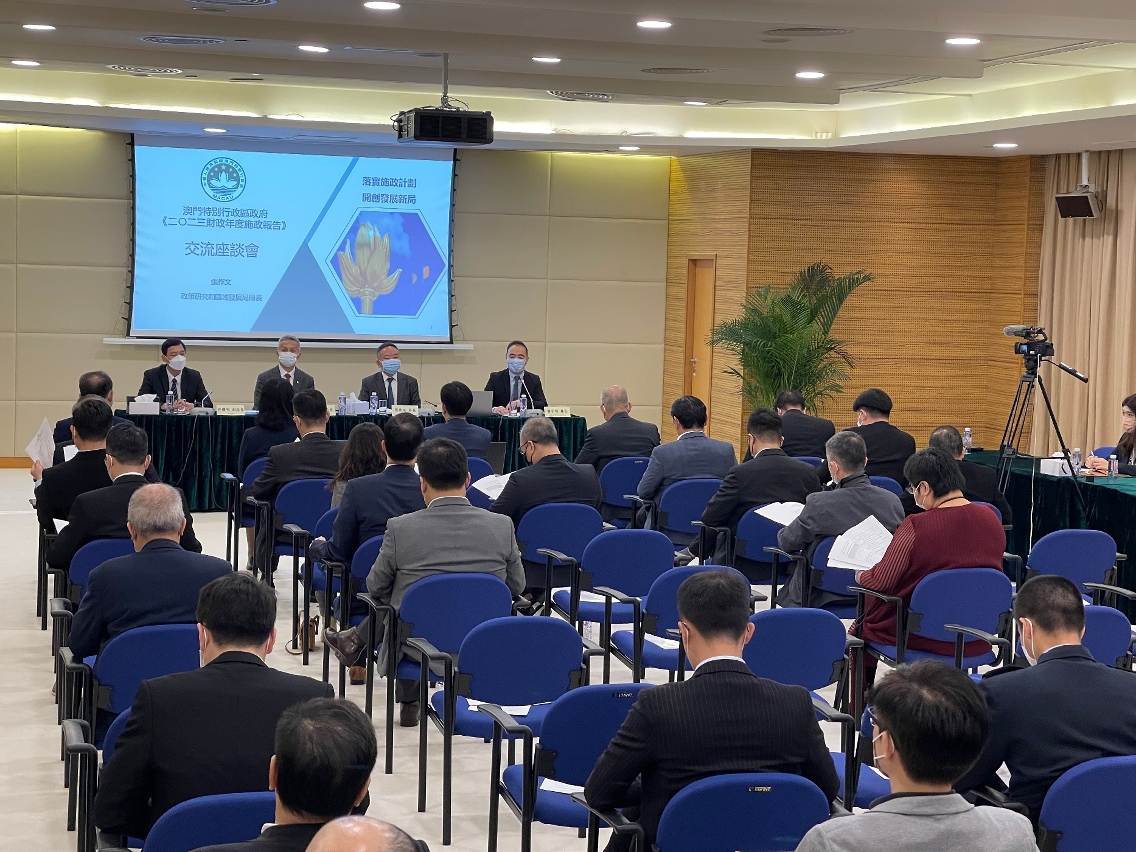 為進一步加強特區政府施政報告及施政方針重點的宣傳工作,讓社會各界更深入了解特區政府施政目標和政策方向,特區政府本周一連五日舉行《2023年財政年度施政報告》及施政方針重點系列交流座談會。今日交流座談會對施政報告及經濟財政範疇的重點內容進行解說,並與受邀的社會人士進行互動交流。