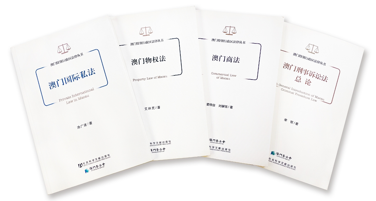 “澳門特別行政區法律叢書”之一,由涂廣建撰寫的《澳門國際私法》,艾林芝撰寫的《澳門物權法》,曹錦俊、劉耀強撰寫的《澳門商法》,以及李哲撰寫的《澳門刑事訴訟法總論》,四部書籍現已由澳門基金會和社會科學文獻出版社加印“澳門版”各500冊發行。