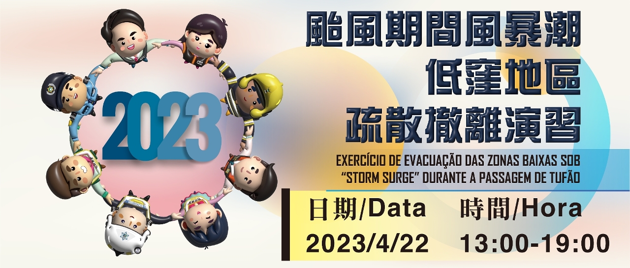 是次演習是模擬本澳受超強颱風“水晶魚2023”正面吹襲,且受風暴潮影響導致低窪地區嚴重水浸,並發生各類颱風期間的意外事故及事件。屆時,民防架構將會實地演練多項應急救援行動,並同步執行“颱風期間風暴潮低窪地區疏散撤離計劃”。演習過程中,低窪地區的廣播柱會發出低窪地區音頻警報信號之廣播聲響,而當中參與“疏散撤離計劃”的人員是由各保安部隊及保安部門、社會工作局、民間團體及事前已報名參與的市民共同組成,故此,一般市民和旅客毋須真實參與任何的疏散撤離行動,敬請市民知悉。