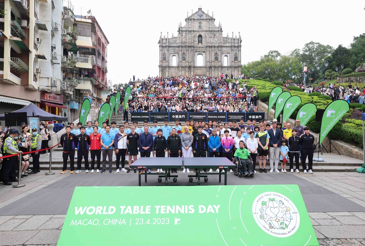 國際乒聯主席佩特拉‧索林,國際乒聯第一副主席、WTT世界乒聯董事會主席、中國乒協主席劉國梁,國際乒聯集團首席執行官史蒂夫‧丹頓,WTT世界乒聯總經理馬修‧龐德,體育局局長潘永權,銀河娛樂集團行政副總裁林志成,澳門乒乓總會副會長柯宜洲共同出席了「世界乒乓球日」活動,多名球員包括樊振東、梁靖崑、林詩棟、艾利克斯‧勒布倫、費利克斯‧勒布倫、孫穎莎、王藝迪、陳幸同、錢天一與朱思冰,連同澳門青少年乒乓球學校、澳門特奧會學員與一眾嘉賓組成隊伍進行互動交流,氣氛熱鬧。