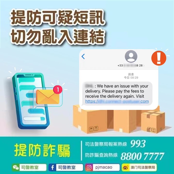 鑑於早前本澳曾發生類似手法的騙案並造成損失,本局再次呼籲市民須時刻保持警惕,慎防不法之徒伺機套取個人資料或詐騙金錢。倘接獲這類手機短訊,請謹慎應對並循可靠渠道核實求證。
