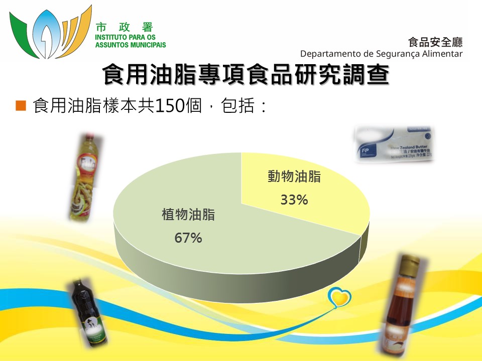 橄欖油、牛油等食用油脂是市民烹調常用的食品,為瞭解本澳食用油脂的食用安全情況,市政署食品安全廳於市面抽取合共一百五十個食用油脂樣本,進行重金屬、食品添加劑及真菌毒素檢測,結果未見異常。