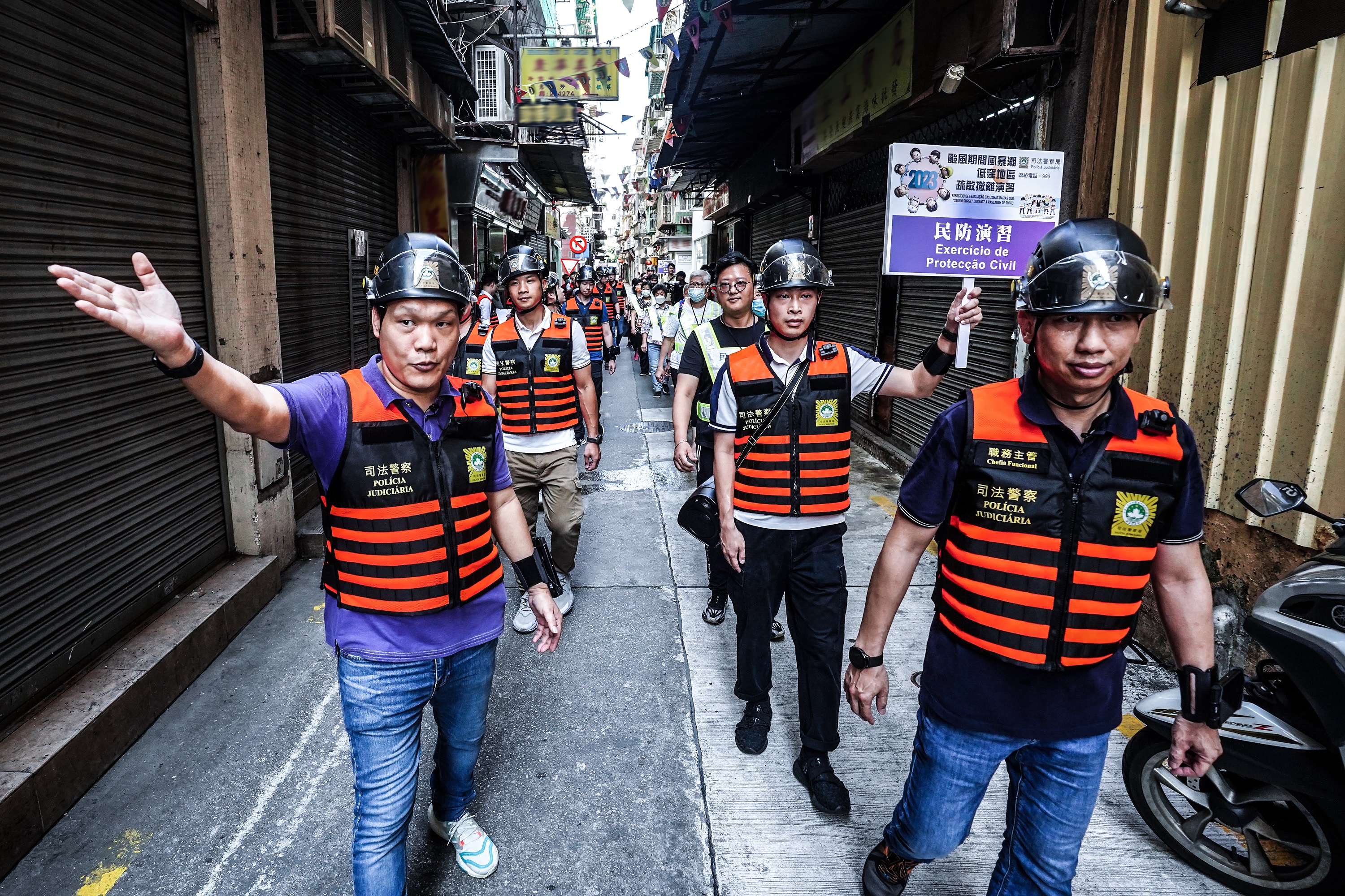 本澳正值颱風季節,為了聯動社區力量,及早做好應對風暴潮的準備工作,司法警察局在警察總局統籌下,舉辦“颱風期間風暴潮低窪地區疏散撤離計劃”模擬演習,冀能讓低窪地區居民熟悉撤離路線和注意事項,同時提升轄下各部門的溝通協作能力,更加順暢高效執行撤離工作和應對突發民防事件,最大程度保障居民的生命財產安全及社會穩定。