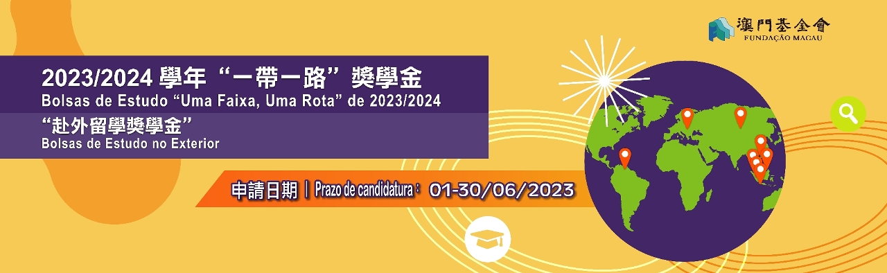 澳門基金會一直面向澳門高等院校學生設立不同的獎學金,鼓勵其努力裝備自我、積極回饋社會,同時支援培養社會人才的工作。為配合特區政府的資助改革工作,更精准地投放社會資源,澳基會整合原有的獎學金項目,於今年推出“高等教育學位課程學生獎學金”,受惠對象為澳門高等院校學生,其中“一帶一路赴外留學獎學金”於2023年6月1至6月30日公開接受申請,名額合共20個,歡迎符合條件的澳門、粵閩學生申請。