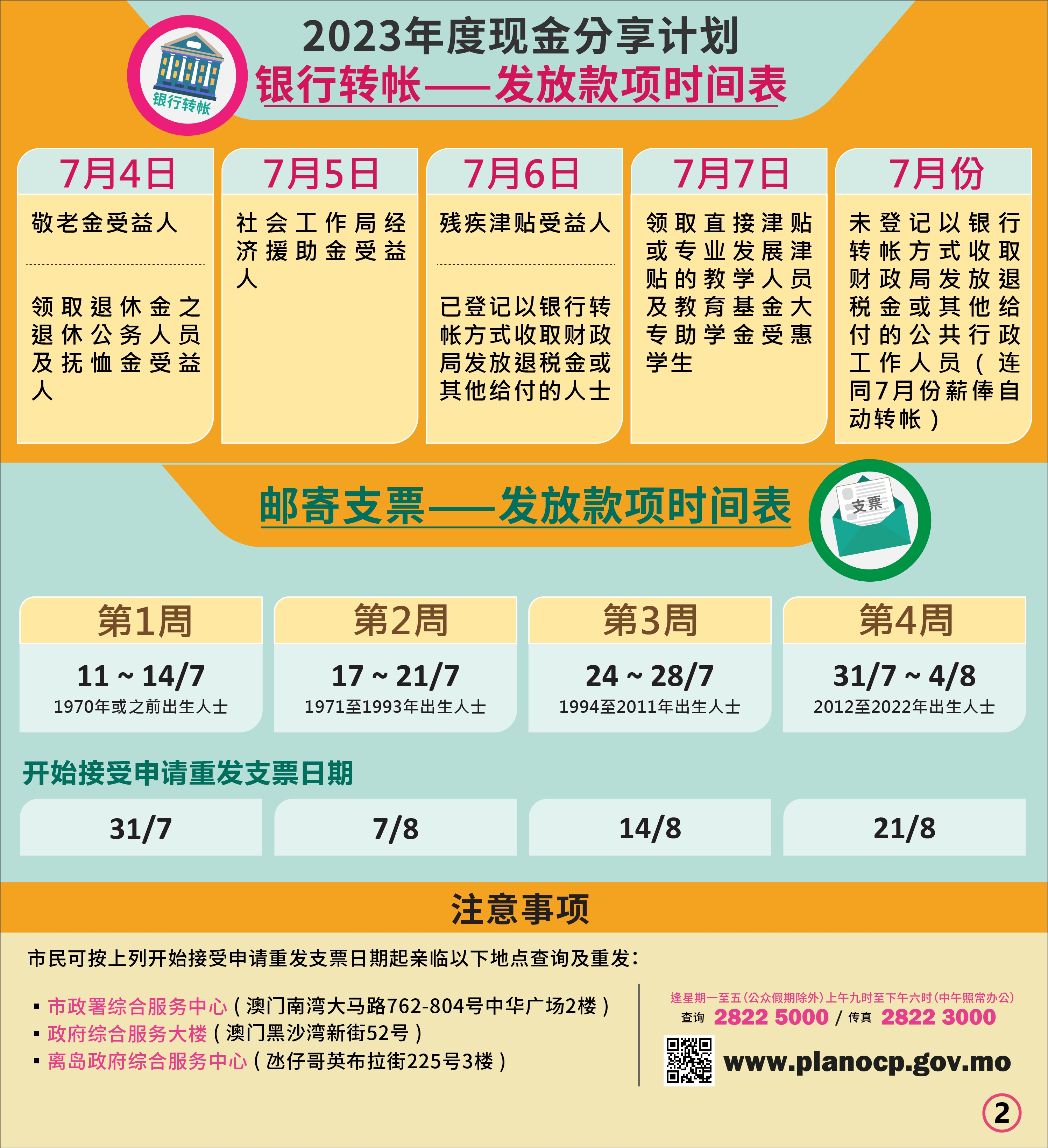 1. 現金分享計劃網頁:www.planocp.gov.mo;或