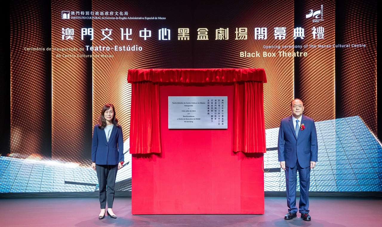 為向本澳藝術青年提供配套優良的訓練及演出空間,進一步推動青年文化表演藝術發展,文化局於2020年起開展澳門文化中心黑盒劇場的設計和佈局規劃,黑盒劇場於2023年4月底竣工,今日(7月3日)舉行開幕典禮,由行政長官賀一誠、社會文化司司長歐陽瑜、社會文化司司長辦公室主任何鈺珊、文化局局長梁惠敏、公共建設局局長林煒浩,以及澳門文化中心黑盒劇場建築師蘇東坡(Bruno Soares)出席主禮,行政長官賀一誠在社會文化司司長歐陽瑜陪同下主持揭幕,宣佈澳門文化中心黑盒劇場正式啟用。
