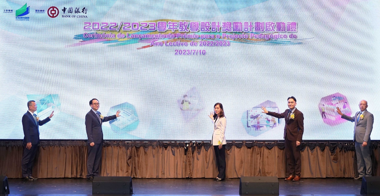 “2022/2023學年教學設計獎勵計劃”啟動禮於7月10日在聖保祿學校禮堂舉行,出席嘉賓包括社會文化司司長歐陽瑜、中央人民政府駐澳門特別行政區聯絡辦公室教育與青年工作部部長李雪飛、教青局局長龔志明、澳門中銀總裁陳曉平及副總裁陳榮達,教青局副局長丁少雄、阮佩賢、黃嘉祺,以及非高等教育學校代表等。