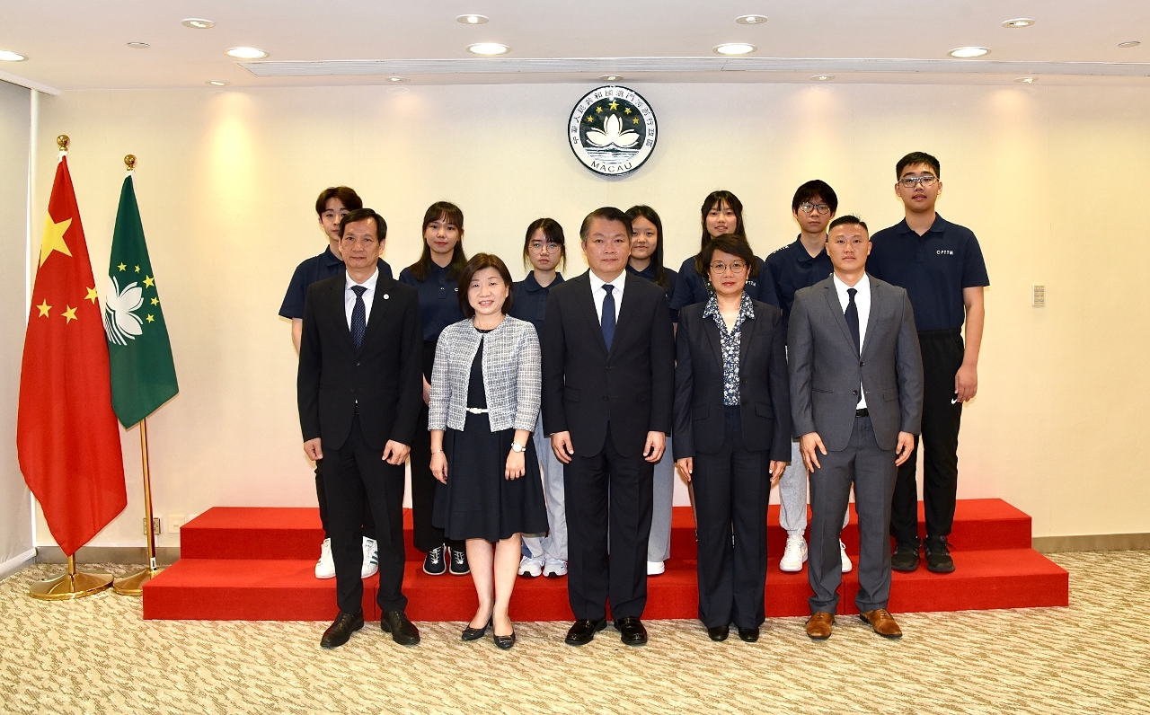 李司長在授旗儀式上為同學打氣。他強調,特區政府對人才培訓不斷投入資源,積極透過各類培訓及競賽活動,培養新一代在多元技能的發展。並希望同學珍惜參賽機會,努力爭取佳績,並與其他國家地區選手交流學習,擴闊視野,自我提升,為國家及特區的未來發展作出貢獻。