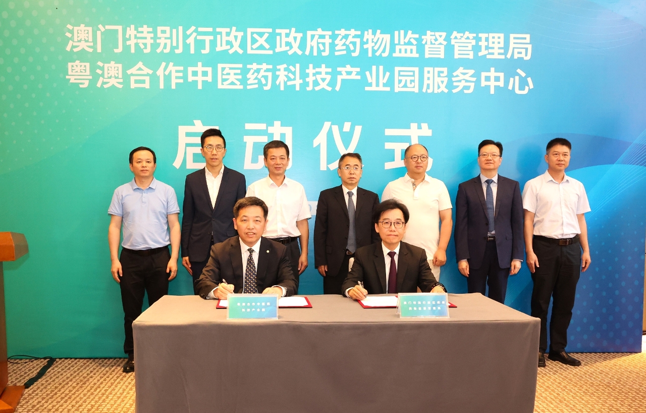 “澳門特別行政區政府藥物監督管理局粵澳合作中醫藥科技產業園服務中心”啟動儀式暨大灣區中醫藥政策與技術會議今天(8月2日)在粵澳合作中醫藥科技產業園(下稱“產業園”)舉行。啟動儀式上,澳門藥物監督管理局(下稱“澳門藥監局”)與產業園共同簽署《加快推進粵澳合作中醫藥科技產業園建設發展的合作備忘錄》,同時澳門藥監局在產業園設立的“澳門藥物監督管理局產業園服務中心”(下稱“服務中心”)正式啟動運行。