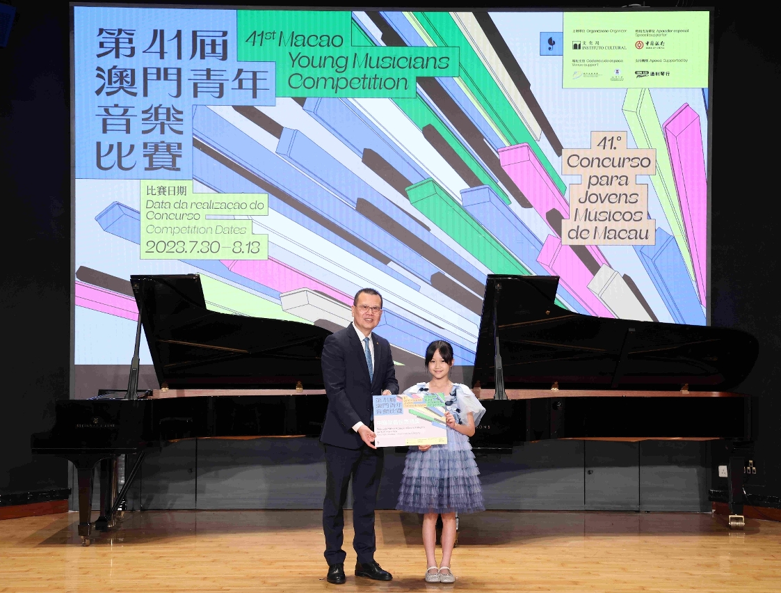 文化局第四十一屆澳門青年音樂比賽於8月13日在澳門旅遊學院啟思樓大禮堂舉行特別大獎賽及頒獎儀式,由文化局副局長鄭繼明及特約支持單位中國銀行(澳門)股份有限公司總裁陳曉平頒發三項特別大奬,今屆比賽圓滿結束。