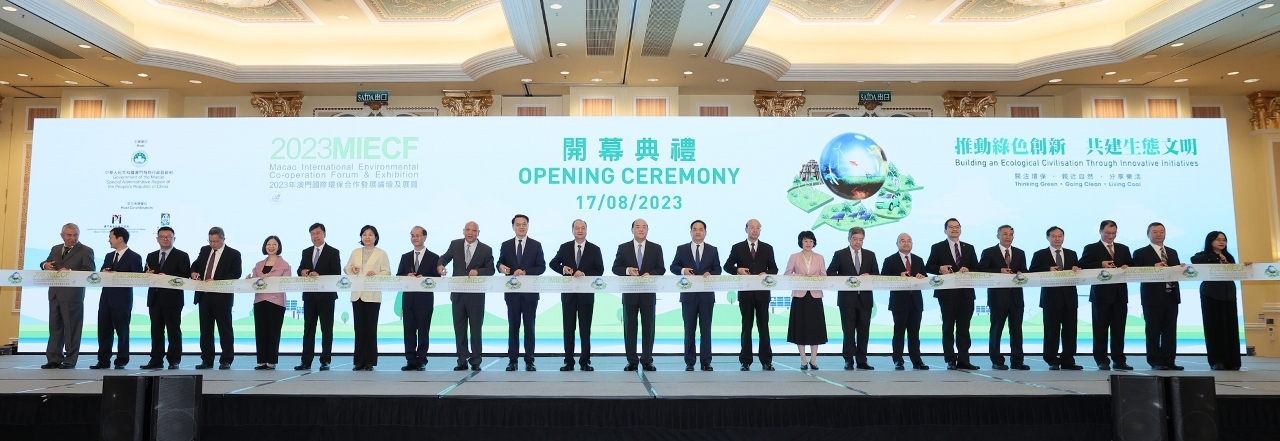 開幕典禮上,澳門特別行政區政府環境保護局局長譚偉文致辭時表示,特區政府積極配合國家環保發展戰略,在發展經濟的同時,有序推進各項節能減碳、源頭減廢等工作,推動環保產業發展,積極深化區域環保合作,致力建設綠色、低碳、宜居的澳門。至今已舉辦至第十五屆的MIECF,成效良好,多年來已打造出環保產業交流合作平台的國際品牌。期望今屆活動的質量及成效再上新台階,發揮澳門的紐帶作用,共同為保護環境作出貢獻。