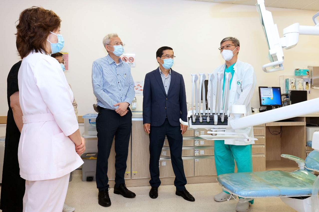 社區醫療衛生範疇副局長鄭成業、社區醫療衛生廳代廳長謝師輝、世界衛生組織傳統醫藥合作中心(澳門)主任莫蕙、社區醫療衛生範疇護士監督梁寶鸞、青洲衛生中心代主任歐仲源和護士長李紅梅,到衛生中心探望各科室的醫護人員,關懷各醫護人員的身心健康,並感謝他們不辭勞苦盡心工作。
