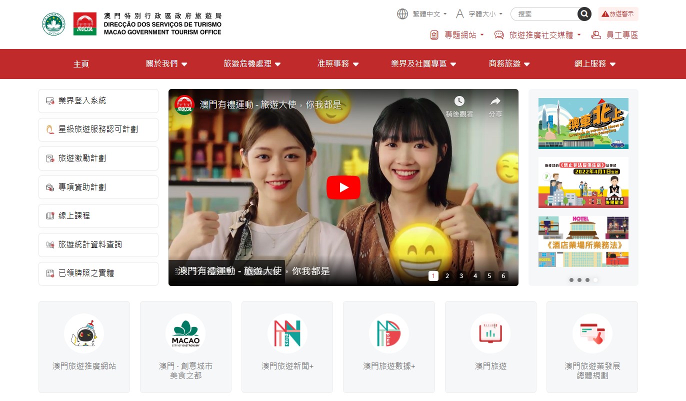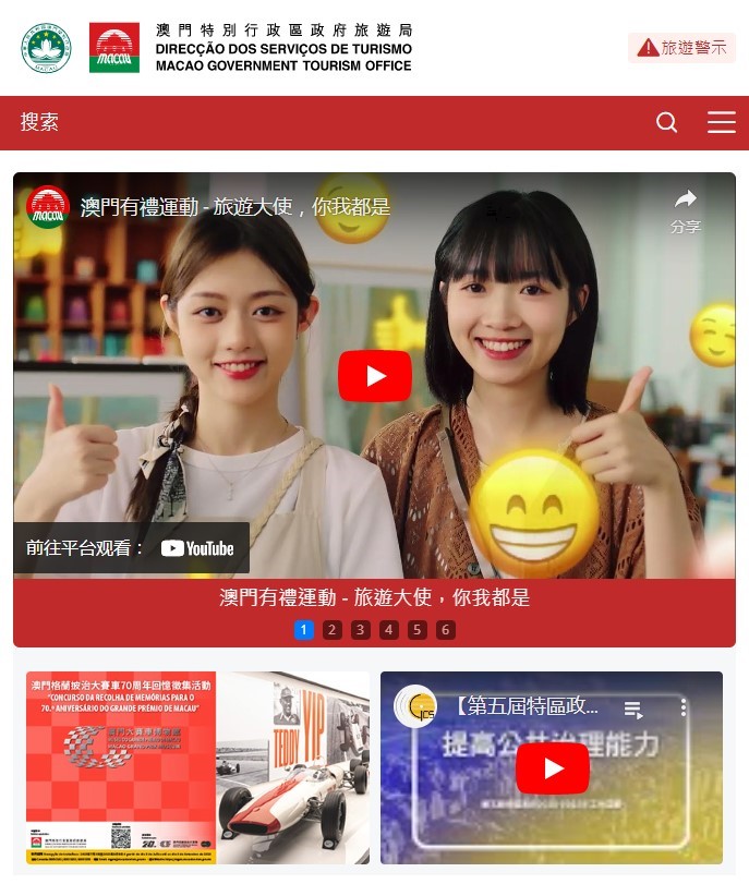 網站主頁通過最新的新聞稿圖片及宣傳影片等多媒體內容,讓使用者更輕易瞭解旅遊局的最新動向。