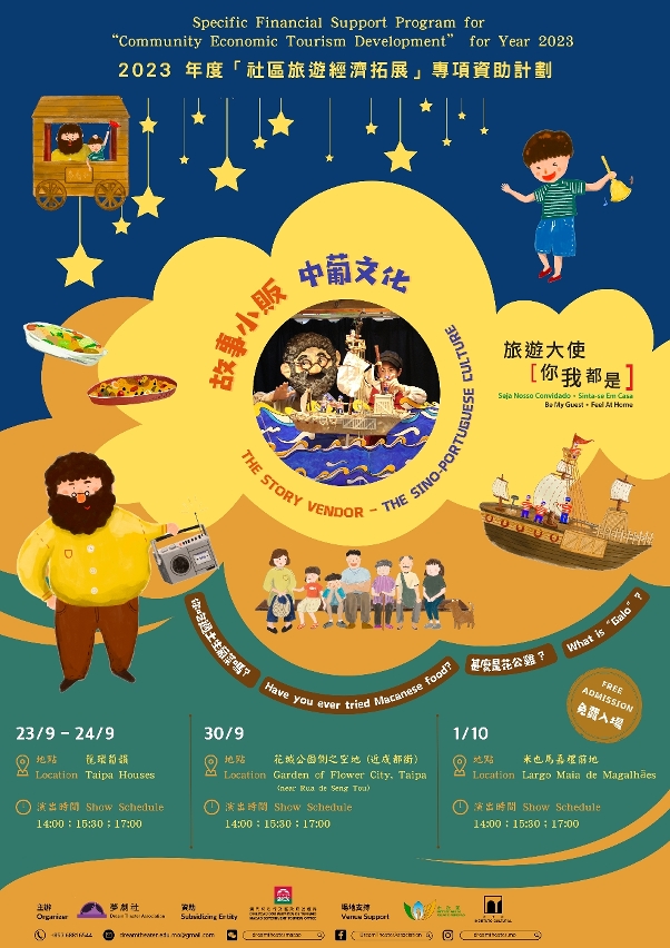 《故事小販.中葡文化》以偶劇表演形式,分別在9月23至24日於龍環葡韻、9月30日於氹仔花城公園及10月1日於氹仔米也馬嘉禮前地進行一共12場流動劇場,演出時間為下午2時、下午3時30分以及下午5時,每場約45分鐘,向觀眾介紹中葡文化共融的歷史背景、美食及傳統故事。